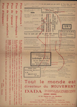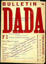 In May 1916 the magazine Cabaret Voltaire appeared, edited both in French and German. Ball saw in it the first synthesis of modern artistic and literary movements. In 32 pages, it brought together never before seen pieces, as well as artist’s works and poems already presented at the Cabaret. It included a poem by Guillaume Apollinaire, texts by Kandinsky, Parole in libertà by Marinetti, the reproduction of a poster by Janco and a drawing by Arp (on the cover). With a print run of 500 copies, the magazine allowed the artists to reach a larger public. Ball and Tzara took the opportunity to announce the future publication of a magazine entitled Dada. Thus the word “Dada” – whose paternity is claimed by several of them – appeared for the first time. In addition, they wanted to establish a Societé Voltaire and organize an “international exhibition”. In spite of the effervescence of its projects, the Cabaret closed it doors in early July 1916. The soirées would continue to take place in the Zur Waag hall, and later at the Galerie Dada, an initiative of Tristan Tzara.