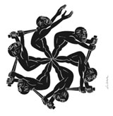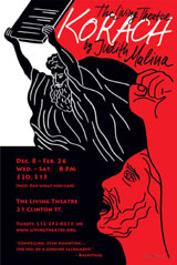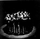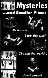 Perhaps here one can comment on a process particular to the Living: collective creation. Most of the masterpieces of the Living during the ‘60’s and ‘70’s were all created collectively and this process continues today. The balance of the dynamic between direction, text writing, creation of the staging, design and music can best be described as fluid, depending on the needs of the play. (Hanon Reznikov for example has written four of our recent productions, his inspiration often the result of discussions from the group.) No doubt anyone looking in on one of our rehearsals would probably not immediately grasp the process as seemingly five or six, if not more, voices tend to direct by committee. In the Living anyone can give a ‘note’ to another actor: a difficult and sometimes frustrating process yet one feels part of a group process and here the Living achieves a certain praxis of its anarchist-pacifist philosophy. This also comes into play as one is often asked: how does one join the Living? With no formal auditions, to work with the Living one simply must ‘be with the Living’. Like any community the process is organic, depending on place, time, circumstances and the needs of a production. One just ‘comes around’.