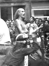 We did not actually call The Living Theatre on East Third Street in Manhattan by this name but in effect that is what it became. Almost four years after Julian’s death we opened a ‘storefront’ in the East Village. A neighborhood embroiled in a struggle between long term residents, mostly poor and ‘of color’ and a new gentrification phenomenon that was trying to displace these same families and the many poor artists who had also for decades made their home there. Throw into this mix the many homeless persons, activists in the housing movement, various other political activists from hard-line communists to Anarchists and the many and various social advocacy groups, all against a backdrop of Rock’n’Roll club, bars, illegal after-hours clubs, junkies and their pushers and police molesting both groups, squatters, Narcotic Anonymous groups, poets, street musicians, street gangs and random criminals, Hare Krishnas, Fundamentalist Christians, students, punks, yuppies: this was the East Village and our audience. Most of the ‘theatre going public” were too scared to venture as far east and south as we were to come see our work. Many a night did we have more actors on stage than in the public!