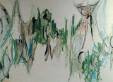 In the brightly colored gouache ''White Cracklings'' (1944), formations of angled black lines lie on a ground of blazing yellow, orange and blue, the whole erratically crisscrossed by clusters of brushy white strokes. ''Untitled'' (1945), a small pastel, is like a map of neurons with dendrites and axons, blobs and lines that connect at various synapses. A few black-and-white ink drawings of creepy, crawly macho lines superimposed on smaller threadlike meanderings are also impressive.