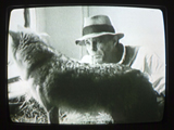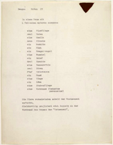 During the entire performance, music by the Danish Fluxus composer Henning Christiansen was played. I would like to give a short impression of the performance, which is entirely based on filmed documentaries, photographs, and the book on Beuys’ performances by Uwe Schneede. During most of the performance Beuys moved right through the audience, executing several actions involving various objects and instruments. He started by washing the feet of seven people, then drew symbols and letters on a blackboard he showed to the audience. He pushed his way through the crowd by slipping the blackboard on the ground.