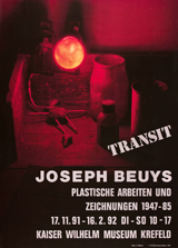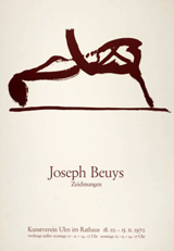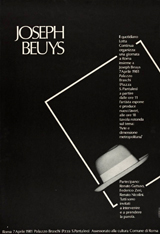 Joseph Beuys (Krefeld, 1921-Düsseldorf, 1986) se convirtió a partir de los años sesenta en una obra de arte viviente. Su carismática figura, su presencia física, su imagen fotogénica, sus palabras, sus gestos y (sobre todo) su firma se convirtieron en obras de arte reconocibles e inconfundibles. Con él culminó el Romanticismo alemán, el mito del genio creador, la interpretación del artista como heraldo del más allá, como chamán o sanador de una sociedad corrompida. Esta "novela del artista" se fue desglosando en obras de una megalómana antimonumentalidad, realizadas con materiales heterogéneos, toscos y maleables que adoptan formas imprecisas y espontáneas pero, sobre todo, esa vida se manifiesta en un sinfín de dibujos, acuarelas, grabados, litografías, serigrafías, carteles, tarjetas, fotografías y pequeños objetos que reflejan su mundo inmediato y cotidiano, con los que ha extendido sus actos y sus ideas por medio de múltiples ediciones, de las que ahora se presenta esta breve muestra. Se trata, en muchos casos, de pequeños papeles que parecen desgarrados al azar sobre los que el artista ha dejado una huella esquemática, formada por trazos contundentes que perfilan toscas figuras de un bestiario personal formado por animales, como liebres, pájaros o renos, que se acompañan con un cuño y la firma del artista. Su aportación al arte de la posmodernidad se concreta en un simbolismo discursivo y egocéntrico que recrea en piezas pequeñas e íntimas que se han convertido en reliquias capaces de engendrar la mitología de un creador liberado de cualquier atadura técnica, social o estilística. A pesar del aspecto primitivista, expresionista o matérico de que hacen gala la mayoría de sus obras, el éxito que éstas han obtenido se apoya en las técnicas de difusión del pop art, que Beuys toma directamente de su amigo Andy Warhol, y en las atractivas ideas de promoción de una "democracia directa", con tintes ecologistas, teorías que difundió desde la atalaya de su cátedra de escultura en la Academia de Düsseldorf.