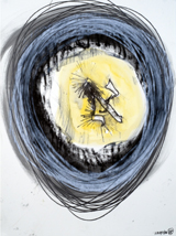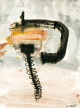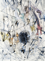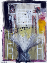 The jumble of information, applied helter-skelter in the style of Chagall or perhaps a wise, inspired child, adds up to an alarming possibility: in the turbulence suggested by the title, a tragedy is taking place. What it is, exactly, remains open to question – and it is in that narrow window of disorientation, of multiple interpretations and the tangled emotions they bring into play, that Hafftka acts. His paintings, highly personal amalgams of his inner reality, reflect his willingness to work almost mediumistically and also, serendipitously.