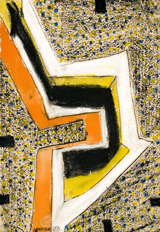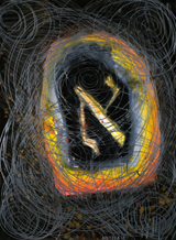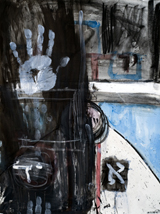 Painted as intuitively as all his other works, relying not on a programmatic or pre-determined design or concept, Forty Years might pay tribute to the artist’s age at roughly the time it was painted, 1985, as he has said in conversation with the author. Or it may be a work in which sources, influences and intentions are subordinated to Hafftka’s primary working method: applying pigments intuitively, and only afterward refining his subject or general theme. And, indeed, vaguely Biblical references abound, linking the imagery to a fevered dream in which personal and archetypal angst intertwine with that of mythical or heroic figures. The Hebrews wandered in the wilderness for forty years after Moses led them out of Egypt, and King David ruled Israel for forty years, stories that are part of the cultural milieu in which Hafftka was raised, and which he adopted during his own days of wandering in search of the spiritual home art has provided.