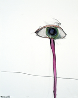 This narrative problem only re-diagnoses the issue that has been nagging at Hafftka’s visual output for quite some time. For more than a decade, he has relied on the same intuitive method that has served him well at the outset: letting things take shape spontaneously, letting brushwork or graphite grope for subject. This mode, a sort of plastic equivalent of automatic writing, has its advantages: In its total submission to the unconscious, in unhinging the perception, it allows, in perhaps the most authentic way possible, for cathartic cleansing. But it also exacts its price. Over the years, Hafftka’s shorthand begins to flaunt — rather than convey — what he has called its “revelatory” message. The fluid, sinuous linearity of his early drawings turns, in this book’s 2005 series, cartoonish and suave. Colors in paintings fall flat: There is neither the chromatic nor the textural majesty of Soutine or Rouault, the expressionists who have paved the way for Hafftka. Nor is there, for that matter, the luminous spectrality of Goya. If — as Sam Hunter notes in “Michael Hafftka: Dreamworks” — “Hafftka himself admires Soutine and Goya unreservedly,” this weariness signals the gulf still separating the artist from his self-appointed mentors.