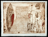 After three decades of increasing art-world reknown (including representation in the permanent collections of the Metropolitan Museum of Art, Museum of Modern Art, Brooklyn Museum of Art, San Francisco Museum of Modern Art, and more), Hafftka has turned his attention to the 13th century Jewish mystical text called the Zohar (which loosely translates as “radiance”). The Zohar, which has been traced to medieval Spain, is a commentary on the Torah written in Aramaic; the Book of Concealment is the fifth book of the Zohar in the Pritzker Edition. A foundational text for Kabbalistic practice (a mystical offshoot of Judaism) the Zohar, unlike the Talmud or other canonical Biblical interpretations, does not seek to better understand the rules, codes, and historical significance of the Torah, but rather uses the Bible as a point of departure for an imaginative, spiritual quest towards meaning. Because of its fanciful aims, the Zohar serves as an appealing subject matter for an artist similarly seeking a mystical connection to the word of God that transcends law and practice.