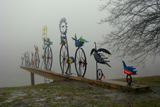 Wladyslaw Hasior, who had died few years ago, was both an artist and a person fascinated by the provincial, church fete material culture. He belongs to a group of artists who had been abandoned by Polish culture about two decades ago. The value of his works has been called into question when some pointed at Hasior's sculptures in which the legend of people's power lived on. Perceived as an artist from the "ancien regime", a star peculiar to the art of Polish People's Republic. He slid (was put in fact) into the shade on the Polish art scene. That simple, or rather simplistic, histo-cultural mechanism had worked perfectly for yet another time, causing a factual harm. As Hasior, and his, to some point insane, works deserve to be treated absolutely seriously nowadays. The label of a dusty museum relic is somewhat too trivial while referring to works that have had shaped the Polish landscape (both mental as well as physical) with verve and imagination. Apart from numerous, though not necessarily displayed, works in museums (we recommend Zakopane and Wroclaw) Hasior left a number of works in public space, primarily monuments. Ranging from plain stone works (like the monument of the Tatry Mountain Rescue Team in Zakopane), to impressive sculptures incorporating water and wind (monuments in Kuznice and Czorsztyn), to experimental forms like Monument of the Shot Hostages in Wroclaw - cast in concrete in moulds dug directly in the ground and then set on fire. Fire was also the favorite element used by the artist in his "processions" and other, ephemeral, projects in public space. It was also fire that had appeared in Szczcin in 1975, when on the slopes surrounding the castle Hasior "unveiled" his new work "Firebirds". This impressive and prodigious installation made of iron and sheet metal remained in Szczecin for good. After a few moves in the 90's it eventually landed in Kasprowicz park on the outskirts of city center. That was the moment when its slow but gradual degeneration began.