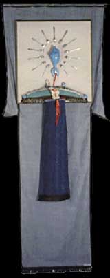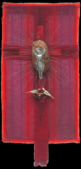 For his diploma project at the Academy of Fine Arts in Warsaw, Hasior created a set of ceramic Stations of the Cross destined for St. Casimir's Church in Nowy Sacz. Subsequently he also participated in exhibitions of sacral art. Around 1965 Hasior created his first Banners. These resembled church feretories in form and combined dignified, high-toned inspirations with everyday reality and its banal aesthetics.