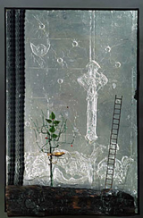 I did not expect it to be so difficult to understand Hasior. It was hard to talk to him. His replies to questions were long, whispered and seemed to wander from the point. For an hour he moved around the whole studio, showing me many of his new comparative works. "Look at this," he whispered, offering two illustrations. One was an advert for a water pump-a scantily clad woman with conspicuous bosom; behind her an angel was rising in flight. The second picture, a reproduction of a Renaissance work, showed a woman in an identical pose. "This is dishonest," he said, distinctly irritated. "They are not allowed to do this to us." At the end of the meeting I realized he had finally answered my original question.