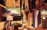 His personality shocked me, his penetrating gaze was paralyzing. From the gallery came the sound of unnerving psychedelic music. He did not say a word, shuffling very slowly into the kitchen. Chaos reigned throughout the fairly substantial living space, although it seemed as if every object was in its rightful place. On the walls was a collection of dozens of unexhibited works, new and old. Under the windows were rows of small shelves, carefully lit for the display of hundreds of framed slides.