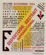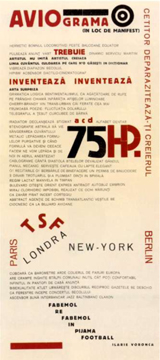 1) As a synaesthesic form of art (inter-media-art), the Romanian visual poetry appeared and flourished on the borderline between the fine arts and poetry. It is exactly this positioning „on the borderline” that brings about its „non-defined” statute. Instead of being being claimed by both, the history of art and by the history of literature (a both-and situation), visual poetry is neither acknowledged by the one, nor by the other (a neither-nor situation). There is a parable about two neighbourghs, both of which expecting that the other one should tend the tree growing on the borderline between their two properties, although the roots of the tree suck their sap from either lands and in spite of the fact that both neighbours benefit from its fruits. Obviously, the picto-poetry is not painting, it is neither poetry (as Brauner and Voronca defined picto-poetry in 1924), since it is both, i.e. visual art and poetry, inextricably intertwined in view of intensifying „their mutual exaltation capacity” (as André Breton defined the „object-poem” in 1929).