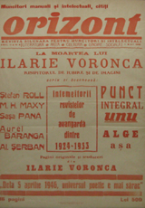 Ilarie Voronca, escritor y poeta de vanguardia, nació el 31 de diciembre de 1903 en Braila (Rumanía) y murió [suicidio]en París el 8 de abril de 1946. Escritor biligüe –en rumano y francés–, fue un miembro destacado del movimiento Dada.