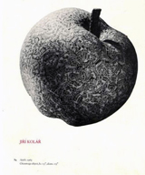 Disintegration was the theme of Kolar's chief works of poetry from the mid-1940s to the mid-1960s, when he ceased writing verse (other than "evident poetry", which went beyond the then fashionable concrete poetry, whose visual form contributed to its meaning, and into pure graphic art). Much of the poetry of his most creative period was not published in his home country until the 1990s. Cerna lyra (Black Lyre), written in 1948 and published in 1997, portrays a Prague of broken or breaking marriages, broken oaths - and broken honesty altogether.