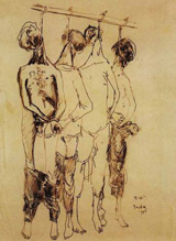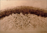 “Cadáveres por todos lados. No se podían contar. Era un mundo alucinante, una especie de paisaje con montañas de cadáveres, entre los cuales merodeaban los que se habían encargado de abrir y recuperar los dientes de oro... también estaban los moribundos entre los muertos. Había que franquearlos o caminar por encima de ellos. Por su parte, ellos nos miraban con los ojos perdidos... nos seguían con los ojos... ya no tenían fuerza para pedir ayuda. Era como una floresta, los troncos cortados, arrojados a derecha y a izquierda, de través. [...] Acababa creándose una pequeña torre. Por la tarde, la torre se movía todavía un poco. Se escuchaban también los chirridos. Por la noche, era el final de febrero, caía un poco de nieve. Y por la mañana la torre ya no se movía.” Para resistir valerosamente a aquel mecanismo de muerte y opresión, Zoran dibuja. Empieza a dibujar a escondidas, registra en signo oscuro todo aquello que ve: sutiles cuerpos aislados, colocados suavemente en la nada, sumidos en el espacio inmemorial de una blancura absoluta; cuerpos desnudos y escabrosos que basculan en la horca. Montones de cadáveres apilados con bocas abiertas de par en par como para engullir un último respiro. Dibujar es resistir: a la barbarie, al embrutecimiento de la conciencia, al oscurecimiento de los sentidos. Dibujar es permanecer alerta: “Lo que se veía alrededor era tan enorme que nadie podrá describirlo nunca. Cortaba los dibujos a trozos, los guardaba bajo la camisa... Luego, en un cierto punto, me hice encerrar en la enfermería donde sabía que ningún SS entraría, y allí podía dibujar hasta que no me hubiera curado.” Logra esconder los dibujos en el torno en donde está obligado a trabajar, en la fábrica. Con la llegada de los americanos y la liberación del campo, la maquinaria se quema en una enorme hoguera y así la mayoría de los dibujos quedan destruidos. Algunos los mete en la camisa durante el largo viaje de regreso. Una ráfaga de viento dispersa algunos de ellos. Los que han quedado son custodiados en museos suizos y americanos.