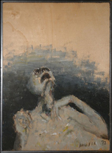 In posizione centrale nel percorso della mostra e con le opere sistemate su cavalletti da studio, le Figure Grigie costituiscono il fulcro nel "viatico" che conduce alla disgregazione del corpo. Sono autoritratti su cui calano colate in grigio lavico che disfano i tratti somatici e li trasformano in "estreme figure" di fortissima intensità concentrica. "Sono dovuto tornare a Dachau" (anni '70)