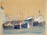 Tras la liberación, ya al límite, decide establecerse en Venecia para pintar, y es Ida quien le presta su estudio. “Antes de la guerra mi pintura estaba llena de pequeñas cosas inútiles; luego, mucho ha caído y se ha purificado. Ahora, lo que cuenta es la sencillez.” Es en Venecia donde descubre el horizonte, pinta acuarelas de colores encendidos, se sorprende. Su Venecia es fabulosa y suspendida. Pequeñas embarcaciones de comercio flotan alineadas frente a la Punta della Dogana. Difuminadas fondamente se metamorfosean en lugares encantados. En variaciones y deslizamientos mínimos se profundiza su idea-visión de la ciudad de agua. Llega a la cavernosidad densa de las catedrales a finales de los años ochenta. Interiores magnéticos que absorben la mirada y el paso en ecos de misterioso bizantinismo. Son grises o difusamente doradas, tienen amplios florones que trasvasan luz. Retumban remotos rituales litúrgicos, o apenas consumados. Son una condensación de la ciudad entera, del impacto con el oro de San Marco. Music expresa así ese acercamiento: “He intentado transmitir el profundo silencio, la atmósfera y la grandiosidad del espacio. Desde la semioscuridad en la que estamos sumidos al entrar, empiezan a emerger formas vagamente iluminadas”.